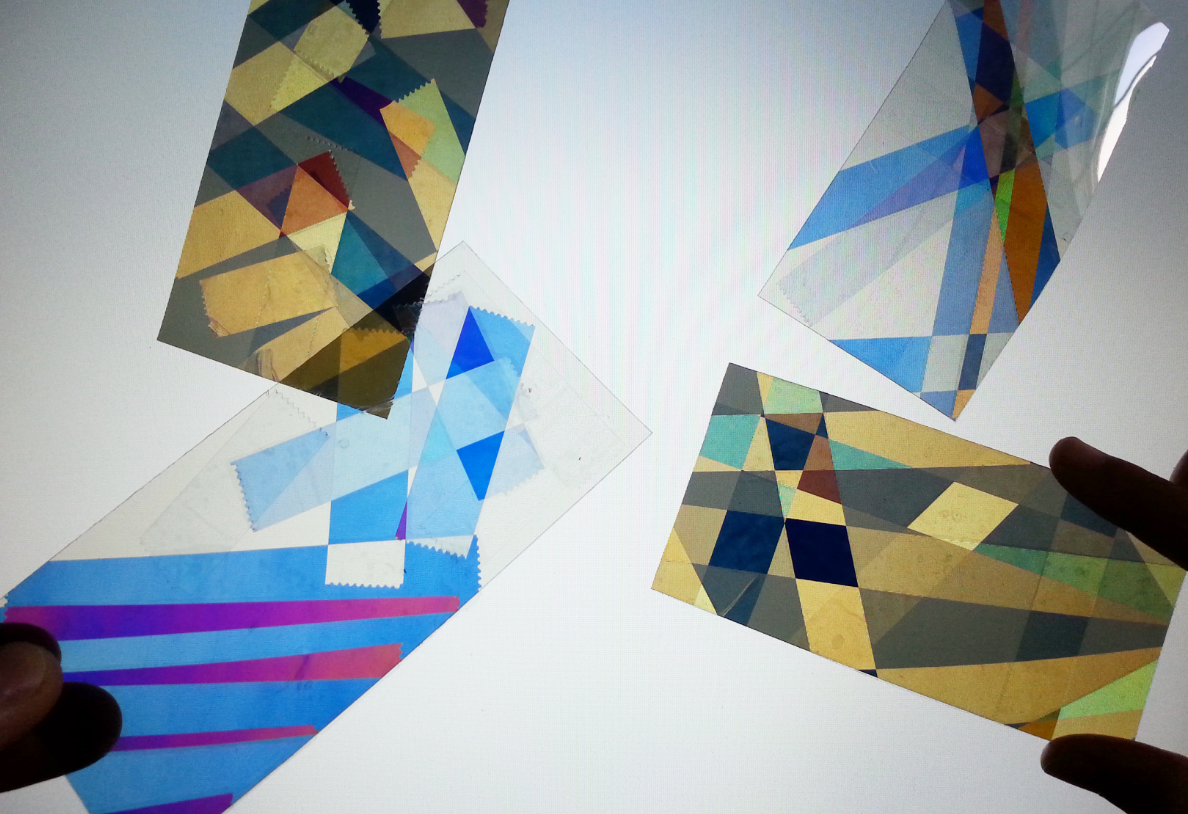 편광필름이 빛을 한방향으로만 통과시키는 것을 방해하여 여러 가지 색을 나타나게 해보고, 창문을 스테인드글래스처럼 색색으로 장식해 보았습니다.