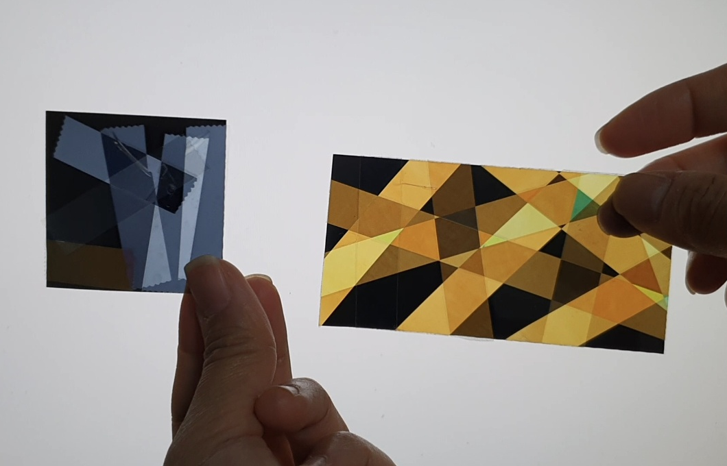 ② LCD모니터에서 색을 확인하여 빠진 부분을 체크하며 테이프를 더 붙여주세요. 1탄에서 체험해본 것처럼 LCD모니터의 빛은 편광되어 있으니, 필름 하나만 대봐도 효과를 확인할 수 있어요.