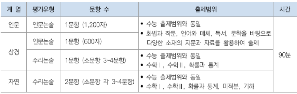 | ① 논술고사 성적 우위자 ② 고배점문항(소문항 기준) 성적 우위자 |