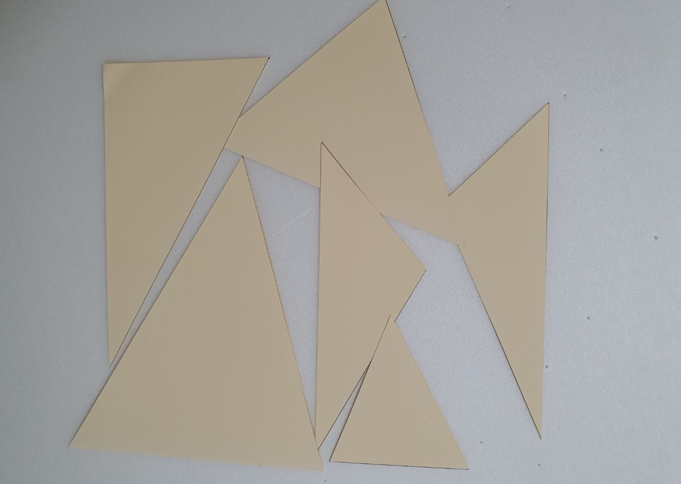 다음 그림과 같이 삼각형의 3각들이 스티커 색 별로 모두 잘라졌습니다.