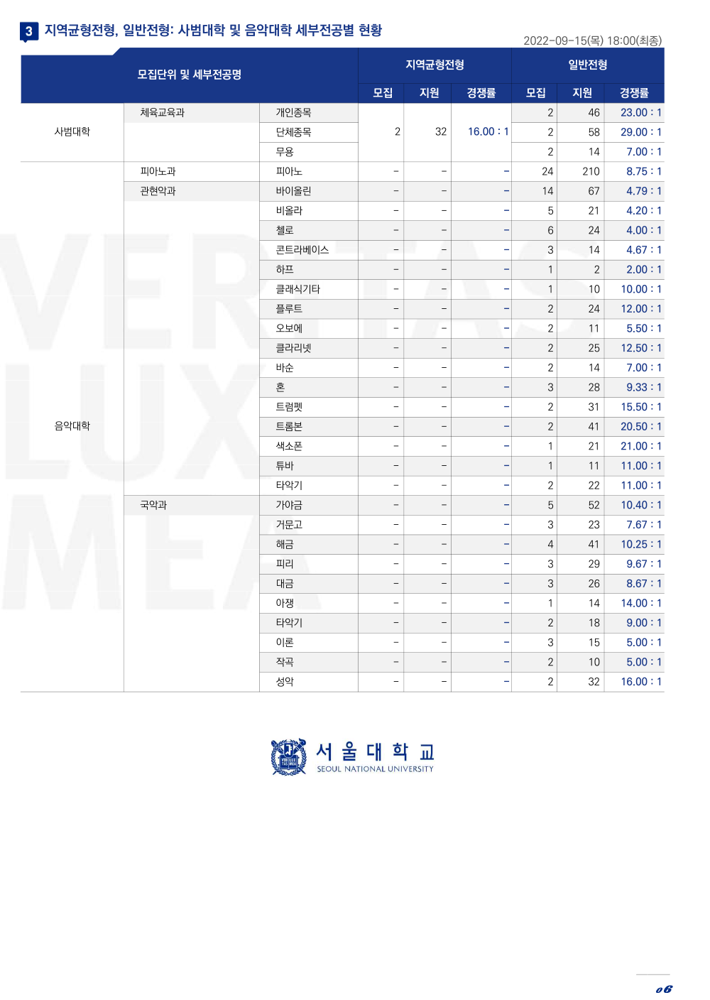 | [대입] 2023학년도 서울대 수시모집 지원현황(5) 20220915(마감일) 15:00 (0) | 2022.09.15 |