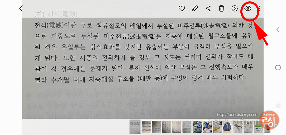 예상했던 것처럼, 아주 잘됩니다. 특수기호도 괜찮고, 영문 오타도 몇자 안되지만 없습니다. 다만, 선택영역을 문장 끝까지로 설정했었는데 뒷부분이 잘려서 나왔습니다. 이렇게 추출한 텍스트는 네이버메모에 붙여봤습니다. 편하신 어플로 옮겨 편집하시면 되겠습니다. PC로 옮기는 것이라면 카톡이 제일 편하지 않을까 싶습니다.