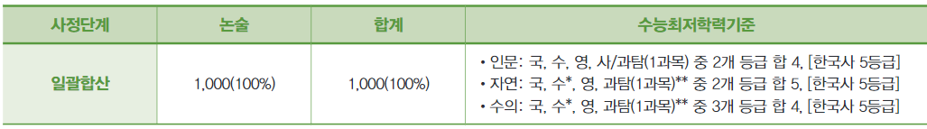 2023학년도 건국대학교 논술전형은 학생부 반영없이 논술 100%이며, 수능최저학력기준이 적용됩니다.