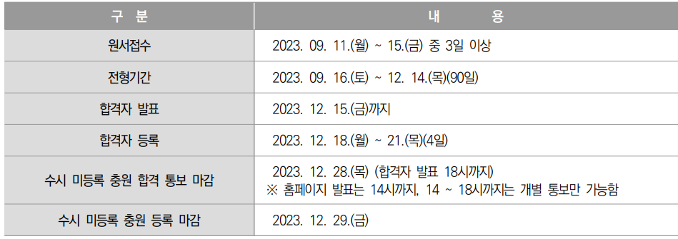 ○ 대학은 정시 모집요강을 2023년 9월 1일(금)까지 대학별 홈페이지를 통해 발표하고, 정시모집에 관한 주요사항을 대교협에 제출하여야 함