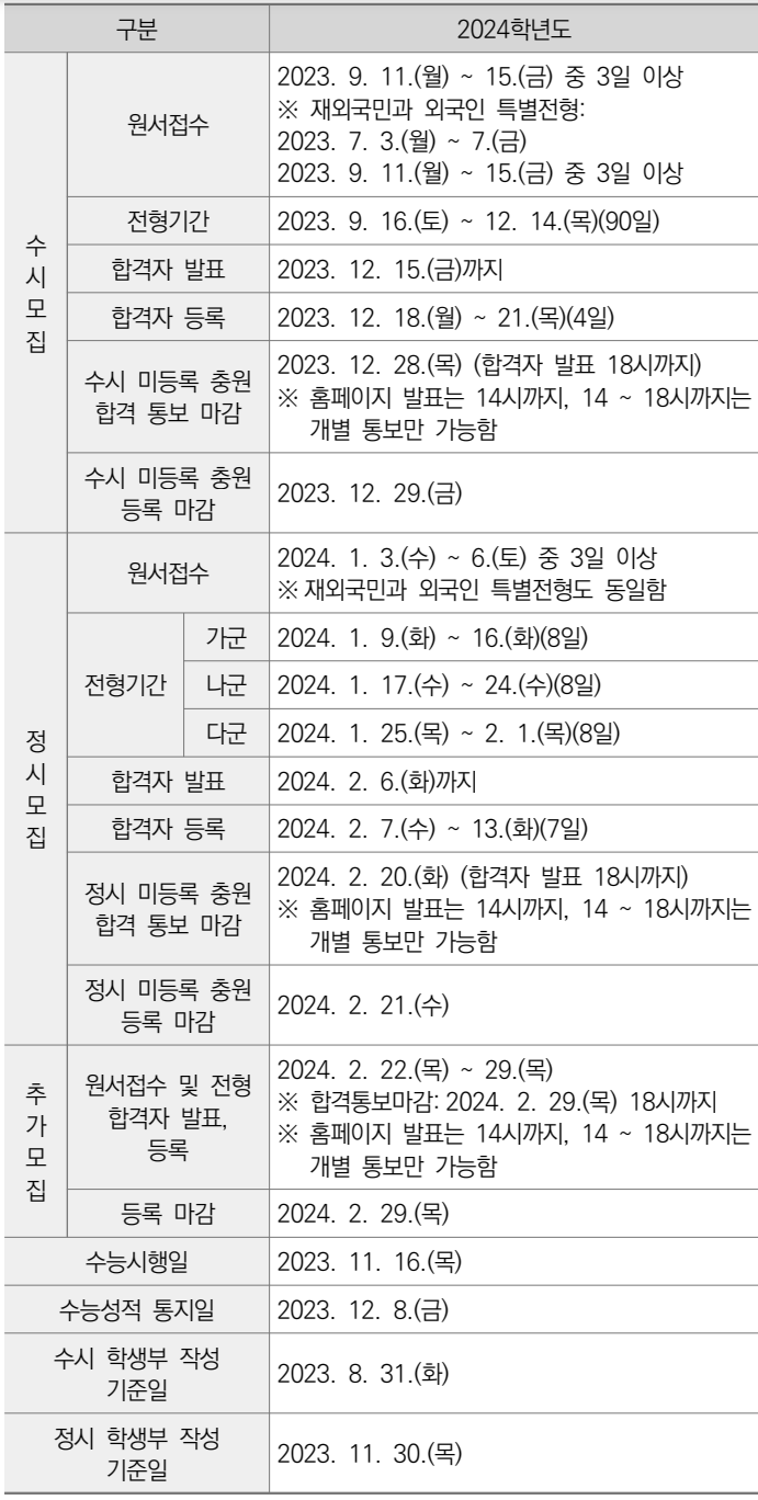 다음의 자료는 대학교육협의회에서 발표한 "2024학년도 대학입학전형기본사항"에서 발췌하여 정리한 내용입니다.