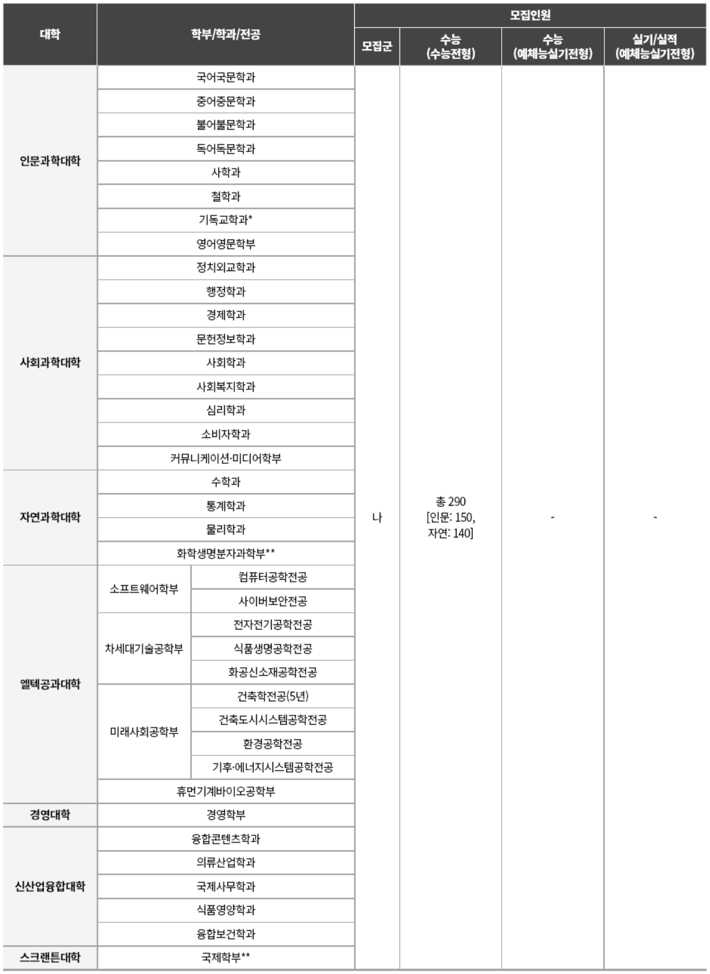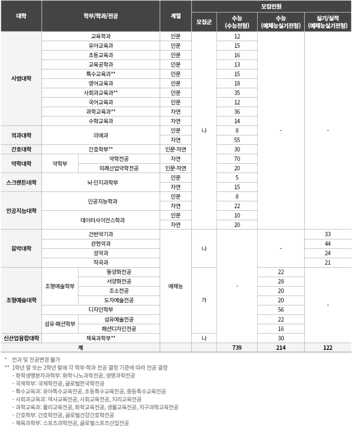 ■ 정시모집 조형예술대학 외 모집단위 : 나군