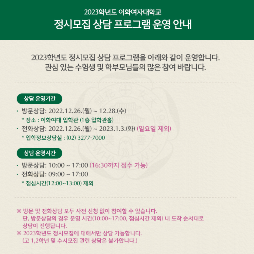 이화여자대학교에서 상담 프로그램을 진행한다고 합니다.