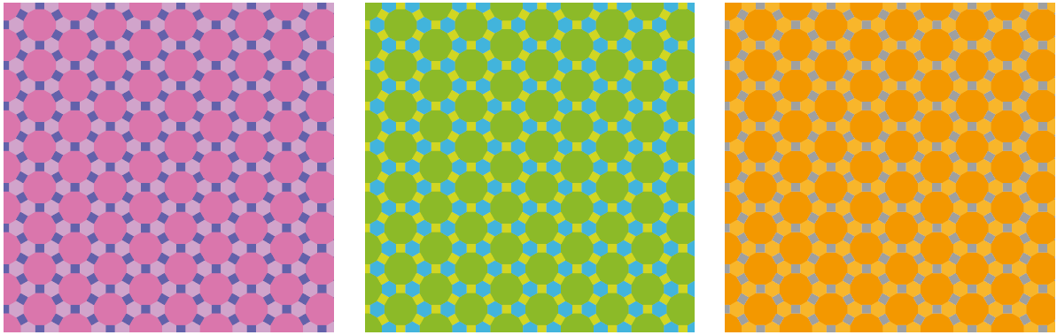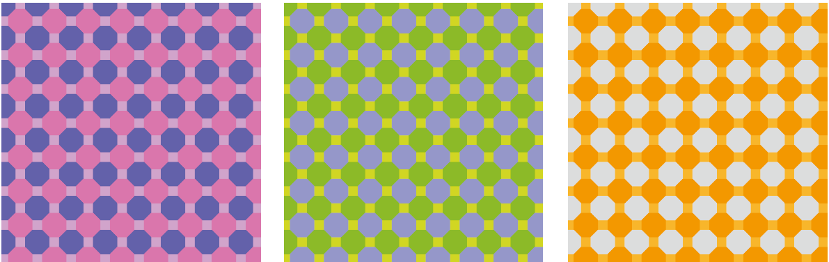 이미지 자료가 필요한 경우 사용하시고, 핑크계열, 그린계열, 옐로우계열 3가지로 만들어봤습니다. 순서는 한점에 모이는 정다각형의 종류와 갯수를 기준으로 정리했습니다.