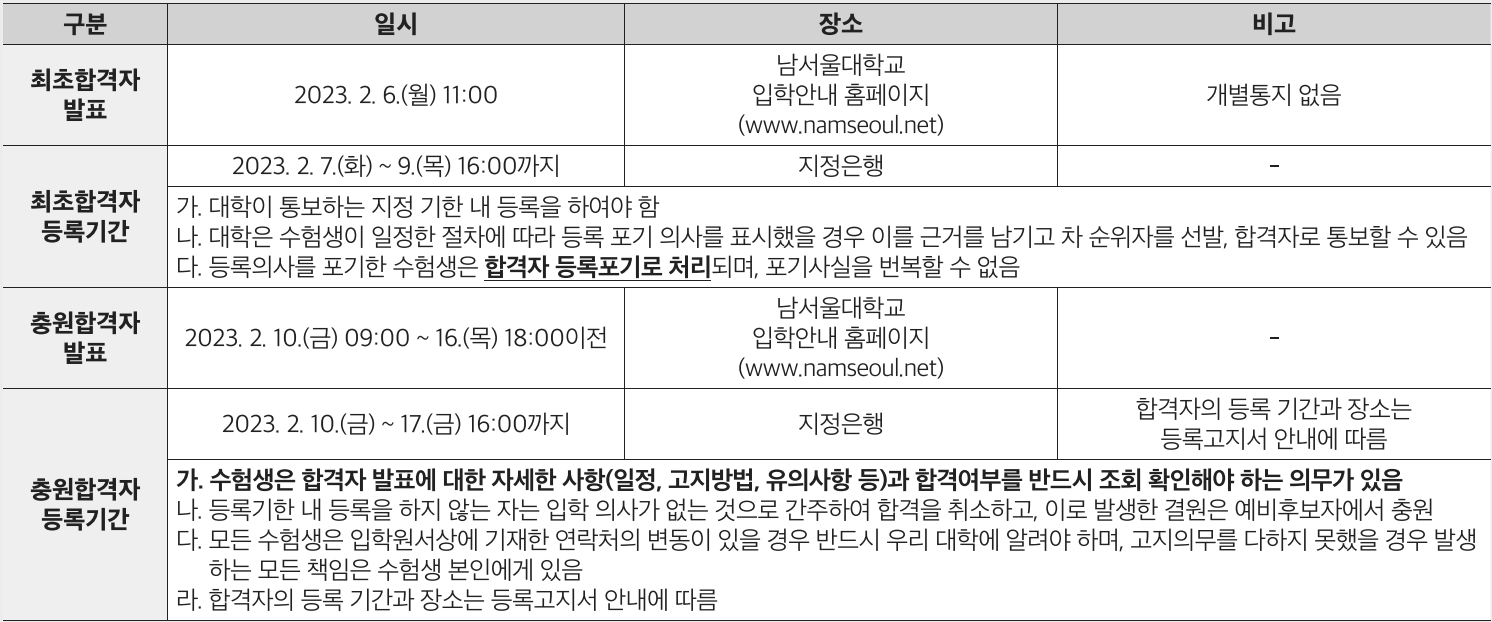 - 충원합격자등록 : 2023. 2.10(금) ~17(금) 16:00