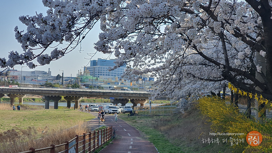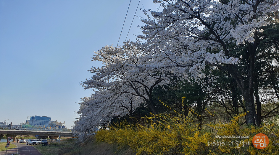 갑천변 산책로를 따라 걸으며 즐기시는 것도, 아니면 차로 드라이브쓰루로 지나가시며 감상하시는 것도 좋습니다.