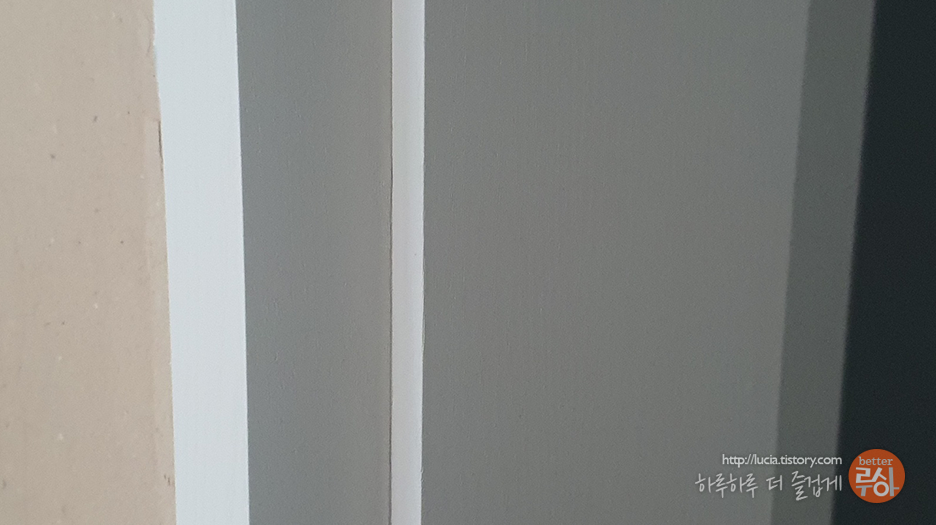 방과 화장실이 맞닿아 있는 코너입니다. 이 부분은 벽면도 문틀과 같은 색 필름으로 마감되었습니다.