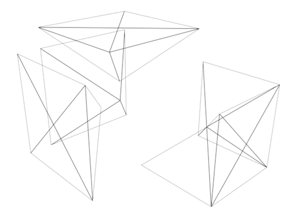 일본의 나오키 요시모토가 발명한 것으로 위에서 살펴본 것처럼 정육면체를 분할하는 방법을 연구하다가 만든 큐브입니다. 8개의 정육면체가 서로 연결되어 있는 형태로 접고 펴는 방법에 따라 다양한 다면체로 변형할 수 있습니다.