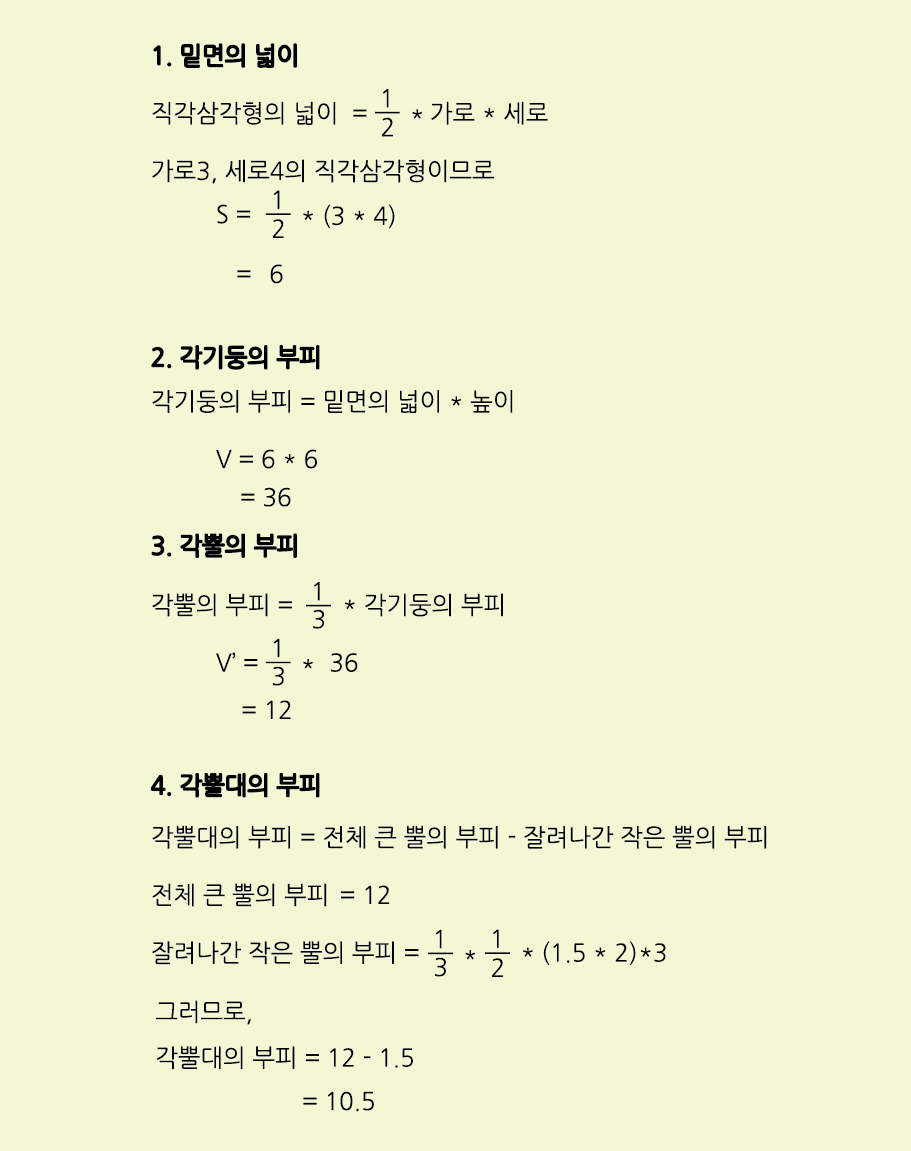 계산이 복잡하지만, 차근 차근 생각하면 다른 각뿔대도 해결할 수 있습니다.