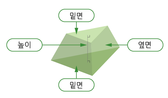 2. 이 평면도형이 높이를 갖게 되면서 기둥이 되어 입체의 부피를 계산했습니다.