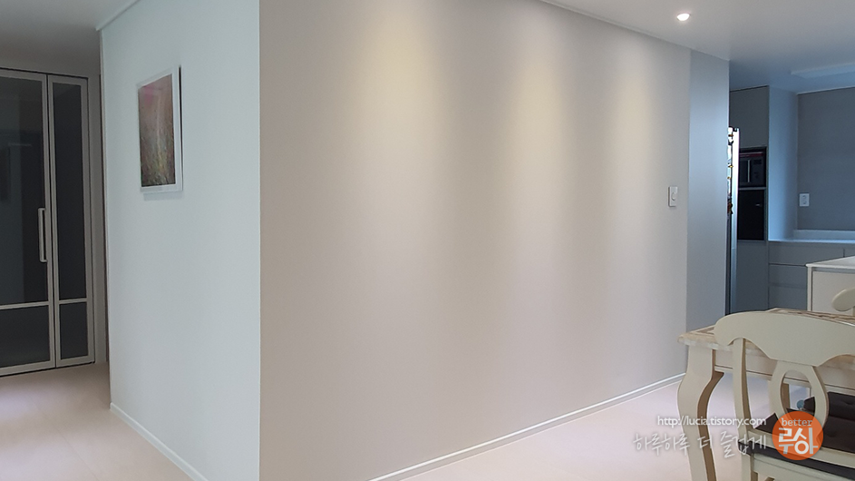 옆의 넓은 벽면은 리모델링 전에는 가구를 놓았었는데, 가구를 다 치우고 보니 이 벽이 너무 휑하고 크게 보입니다.