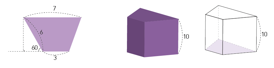 [예제] 다음과 같은 사다리꼴을 밑면으로 하고, 이 밑면을 높이 10의 각기둥으로 만들었을때의 부피를 구하시오.