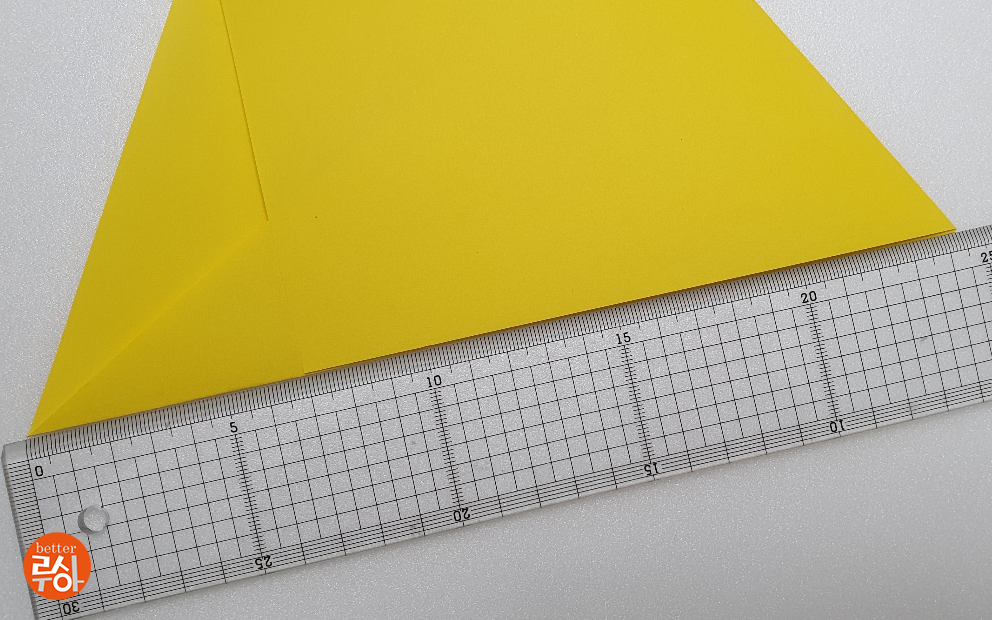 앞의 과정 중 선분BC'의 길이는 A4 용지의 짧은 변의 길이이므로 21cm입니다.
