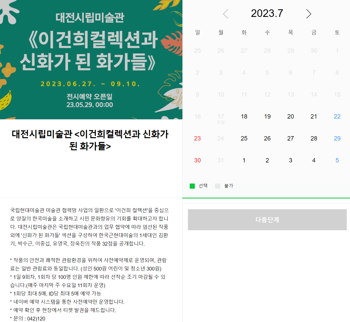 다음은 대전시립미술관의 예약안내페이지인데, 네이버예약으로 진행해야합니다.