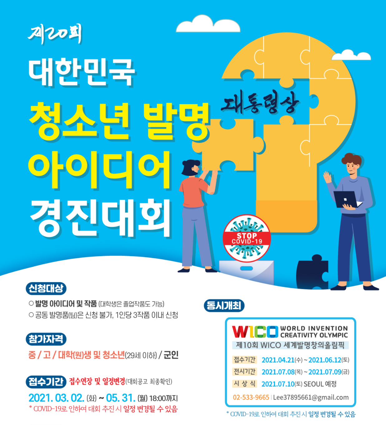 우수 학생 발명품을 발굴, 시상하고 전시하여 학생들의 발명의식 고취 및 창의력 계발에 기여하고자하는 목적으로 특허청과 한국발명진흥회에서 추최/주관하며 교육부, 과학기술정보통신부, 산업통상자원부, WIPO, 경제4단체, 조선일보 등에서 후원하는 대회입니다.