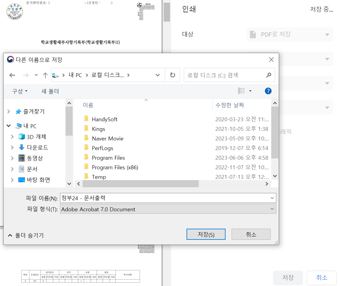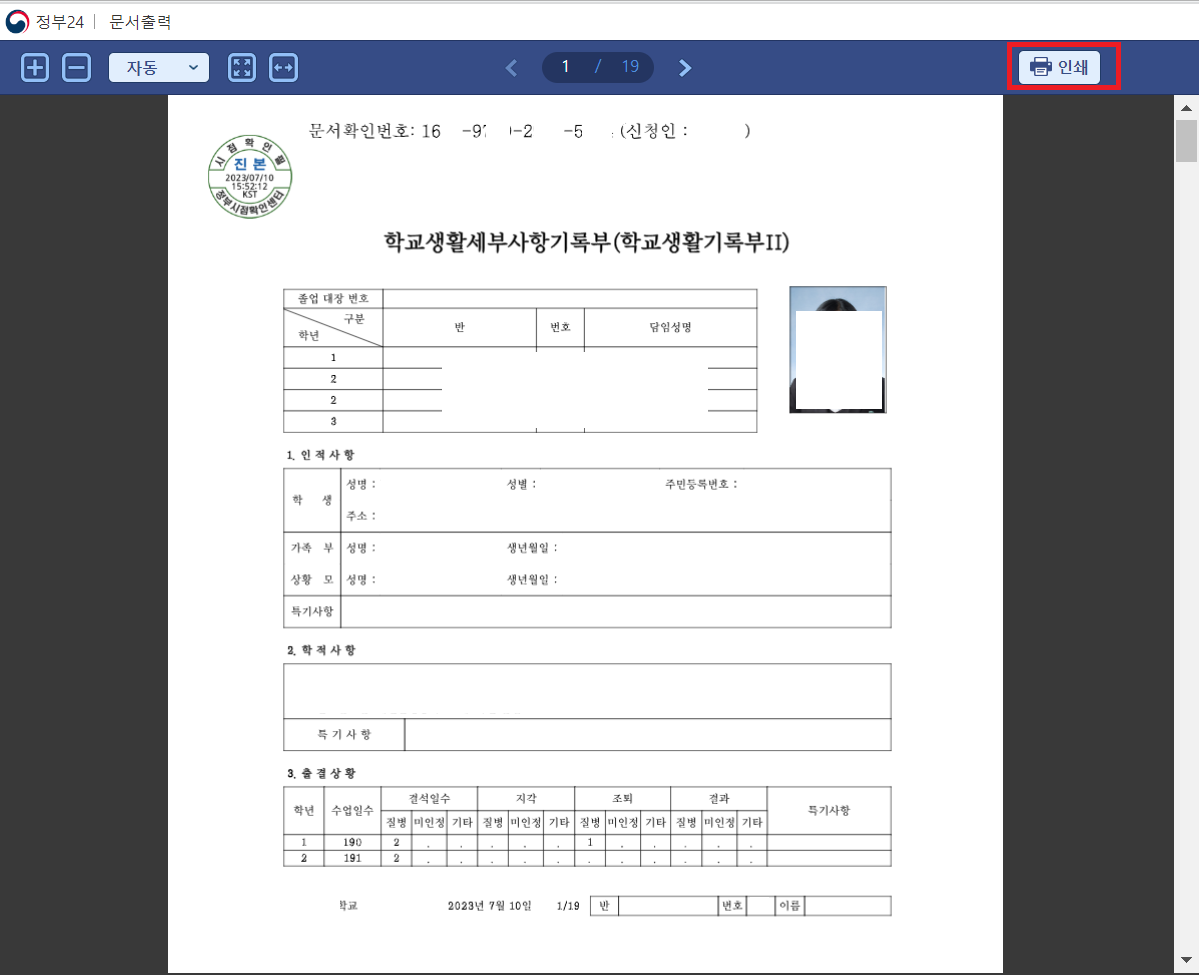 대입, 혹은 고입을 위하여 생활기록부를 출력할 일이 많습니다.
