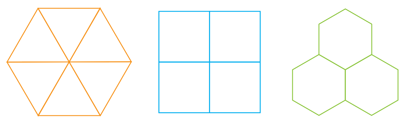 정삼각형의 한 내각의 크기는 60도입니다. 따라서 한 꼭짓점에 정삼각형 6개를 모으면 테셀레이션을 만들 수 있습니다.