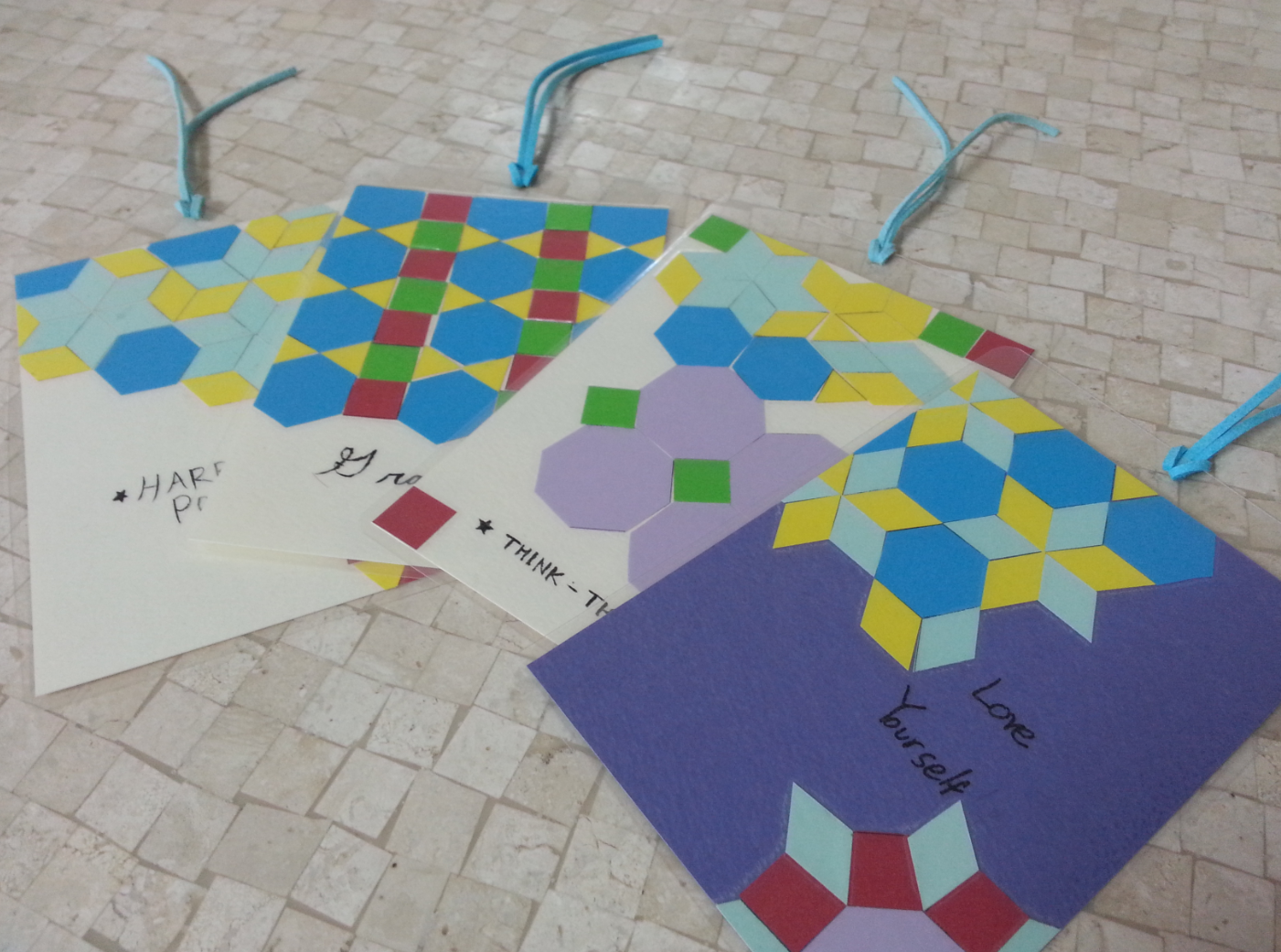 • 최종적으로 마음에 드는 도형패턴을 배경지에 딱풀로 붙여 줍니다.