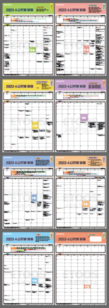 3번 수시전형 간편보기와 4번 2023 수시전형일정은 A4로 출력하니 글자가 너무 작아서 A3로 뽑았습니다. 수시전형 간편보기는그래도 안보입니다. (파일로 두고 확대하며 봐야할 것 같습니다.)